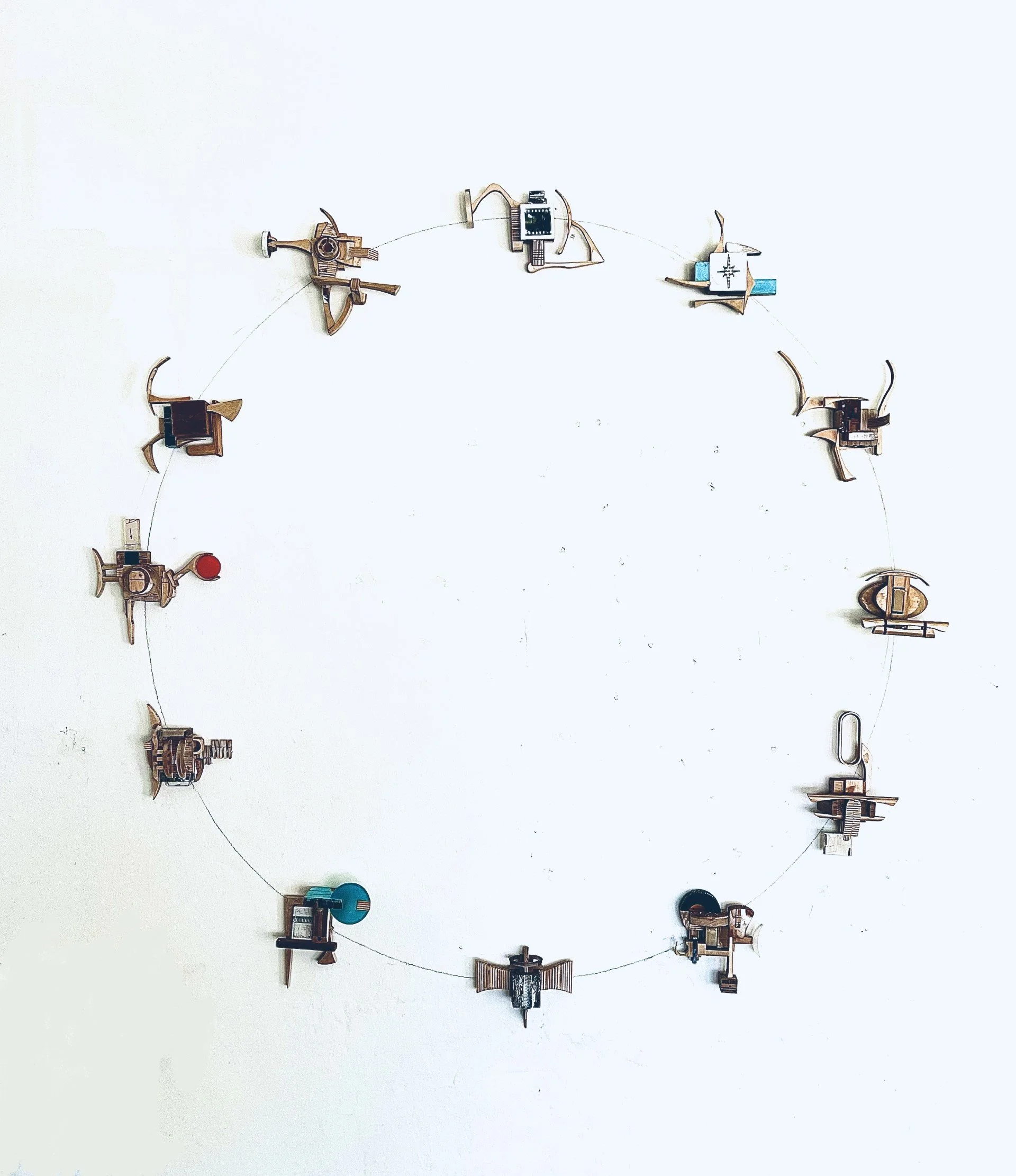 wood, resin, various - 3 ft. diameter (each piece approximately 3” x 5”.)